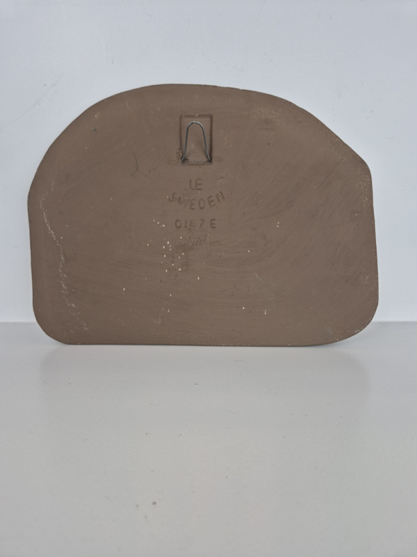 Prachtige vintage wandtegel (nr 0147E) uit de Zweedse keramiekfabriek van Upsala Ekeby. De fabriek is in 1886 opgericht en is gestopt in 1978. Deze tegel is dus zeker meer dan 48 jaar oud!